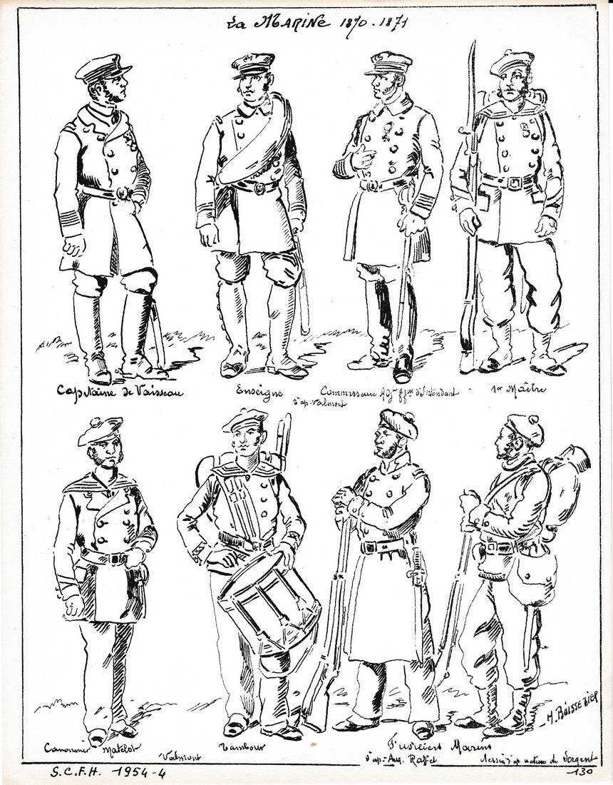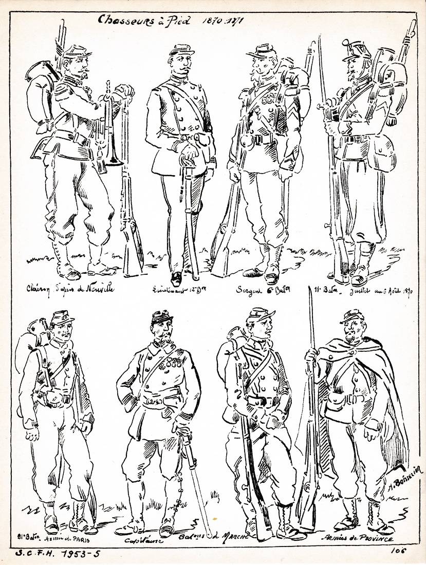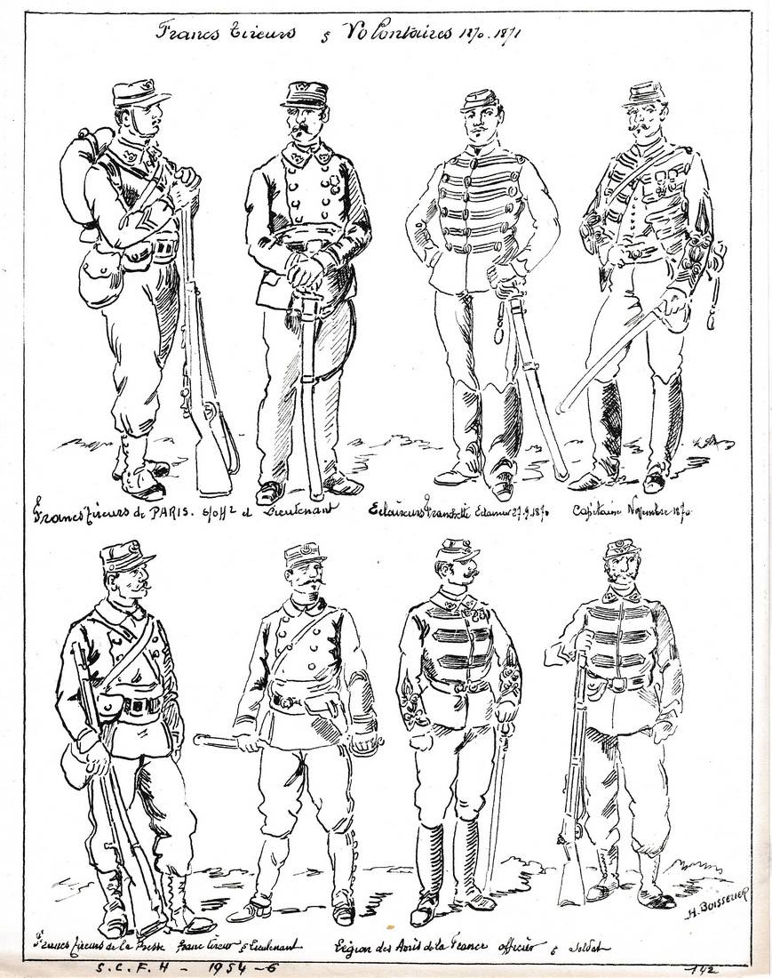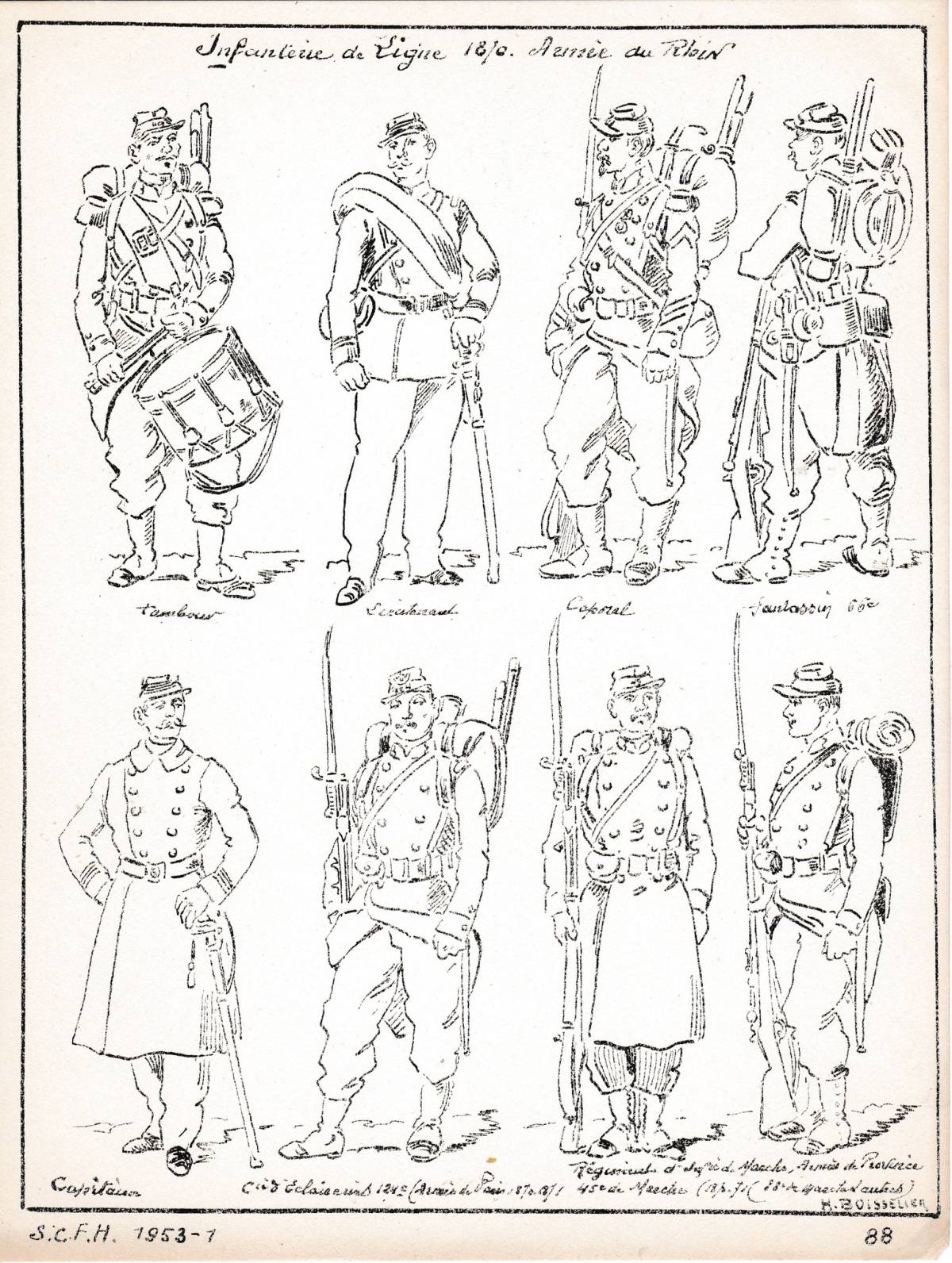 Francs tireurs volontaires 1870 1871 Grenadiers de la garde Impériale Aout Octobre 1870 Infanterie de ligne 1870-Armée de Rloin Infanterie de ligne 1870 La marine 1870 1871
