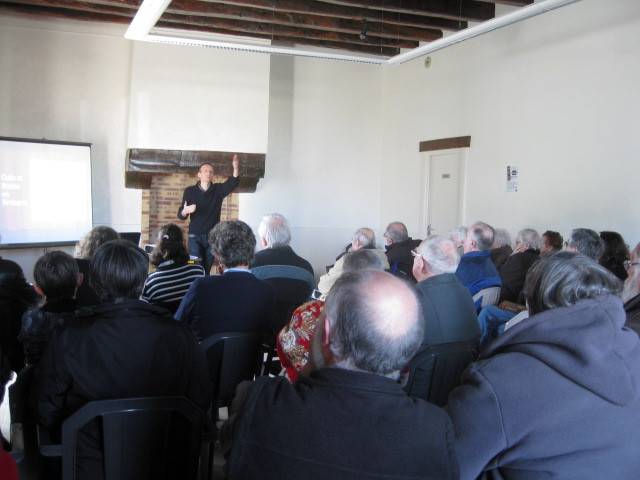 Une bonne participation : environ 35 personnes sont venus écouter Christophe Simon. Parmi elles, 8 résidents de la maison Saint-Alexis accompagnés de leur animatrice Sophie.