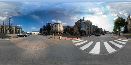 Le panorama de l'église est ici vu du transept. Un autre panorama vu du choeur est visible sur une autre page : Noyal sur Vilaine : l'église Saint-Pierre (chœur)